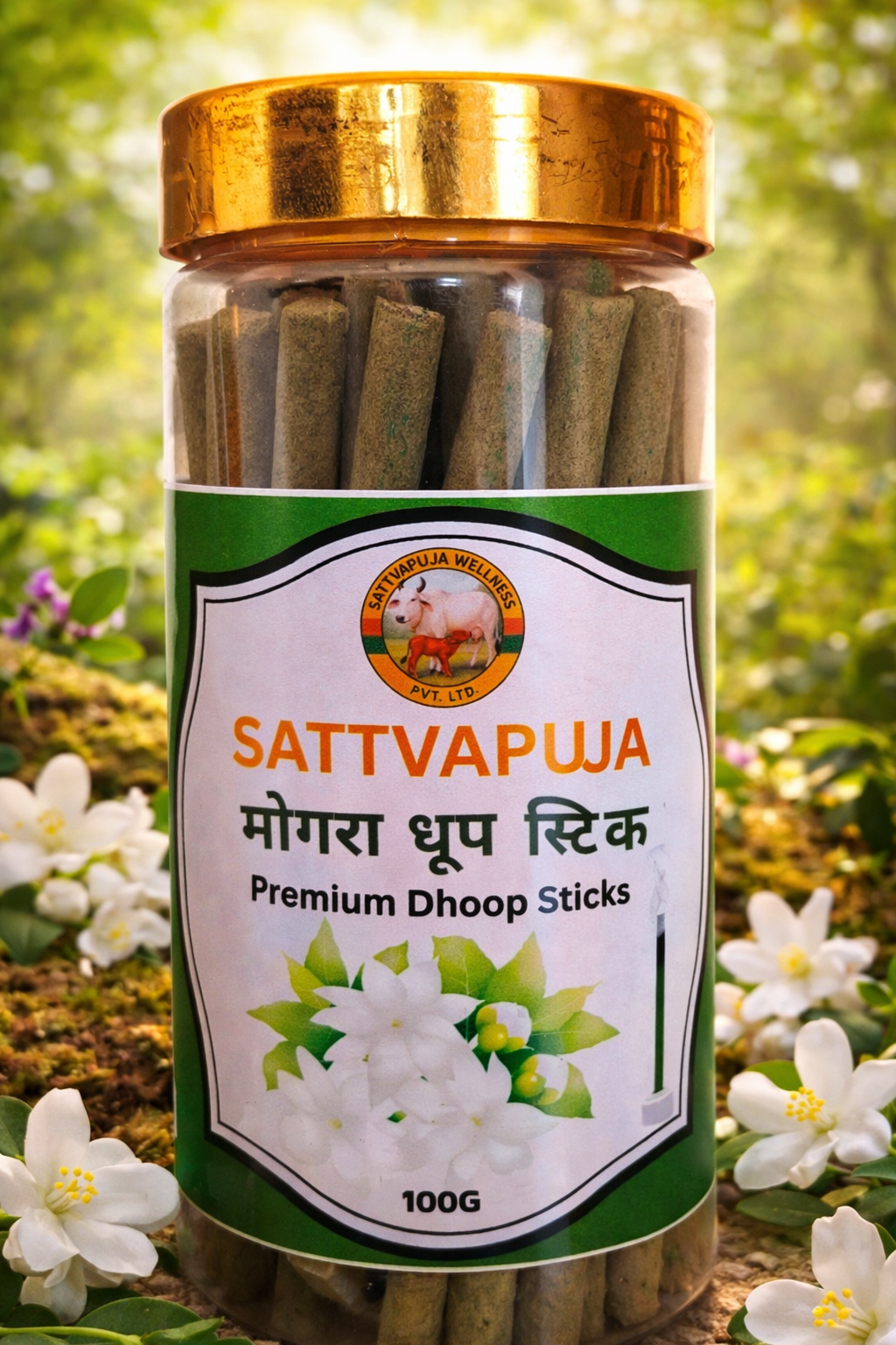 Experience the divine fragrance of Mogra Dhoop Sticks with Sattvapuja. These Mogra Dhoop Sticks are made using natural ingredients and traditional methods to create a soothing and peaceful environment for your daily prayers.