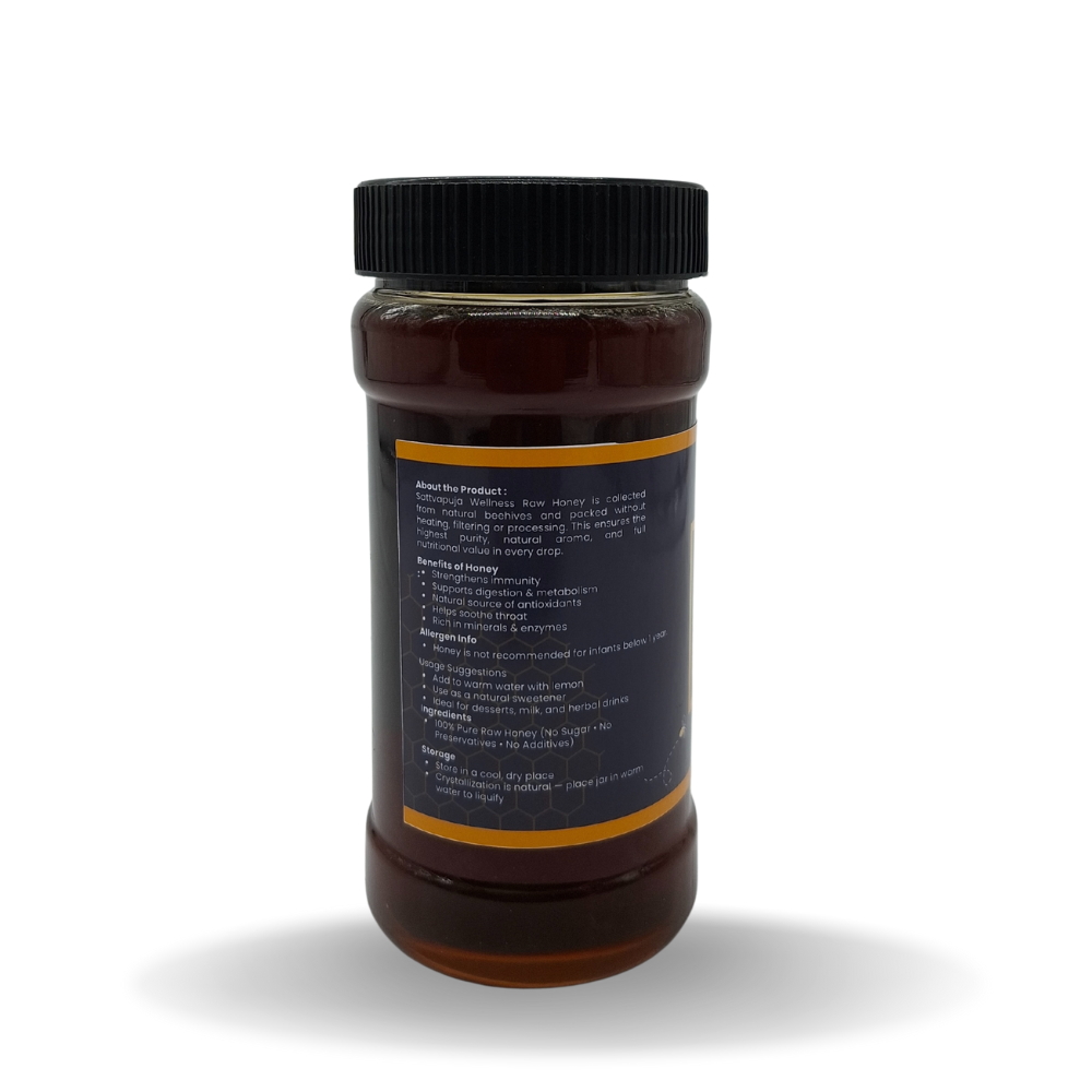 Sattvapuja Forest Honey is sourced from natural forest regions and collected responsibly. It has a deep flavor, thick texture, and high nutritional value. Free from processing and additives, this honey supports immunity and overall wellness.