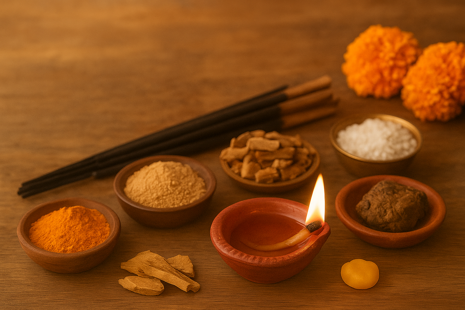 Most commercial incense sticks use charcoal, synthetic oils, and artificial binders that release harmful toxins. Our natural Dhoop Batti is made with: